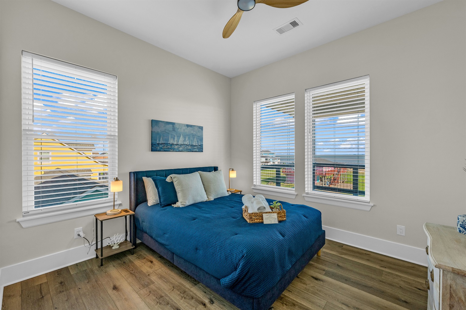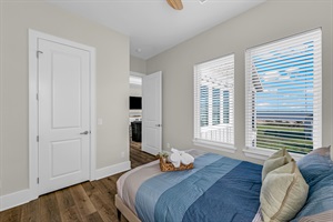 • Bedroom 3 (Second Floor): Sleeps 2, queen bed, ocean views, w/ smart tv and closet.