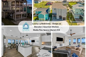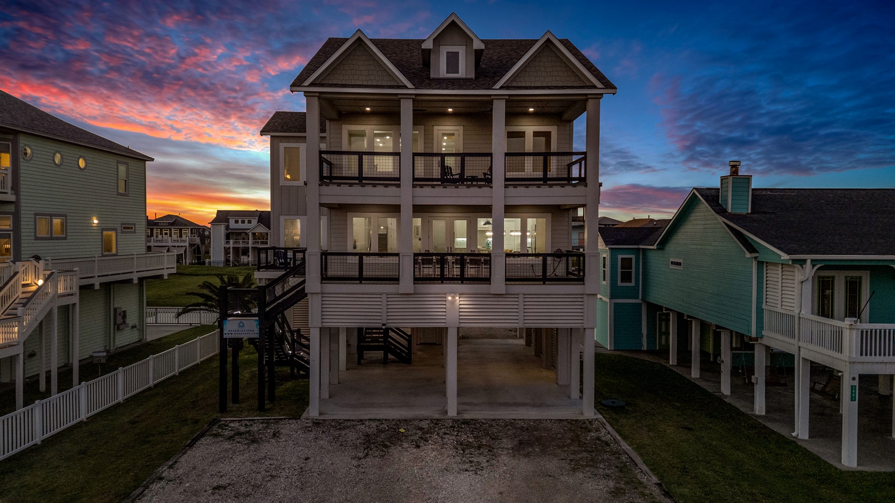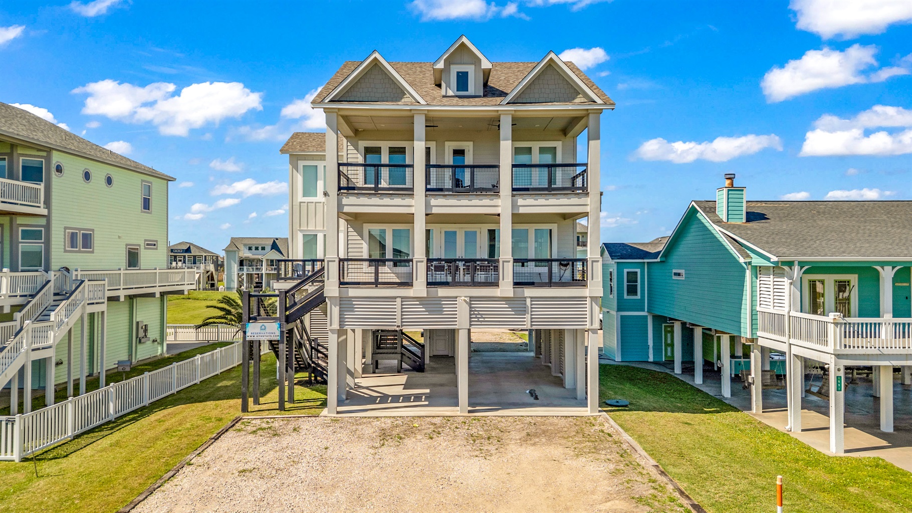 Discover unparalleled luxury at this stunning 5BR, 4.5BA almost beachfront retreat, nestled in the heart of Crystal Beach. Revel in breathtaking ocean views and direct beach access. A spacious open concept living area, real indoor elevator w/ ramp on ground level that transports to each floor and multiple viewing decks, this home is perfect for families and groups seeking a memorable coastal getaway. Enjoy modern amenities like a fully equipped kitchen, and SMART TVs. Your dream Texas coast vacation starts here!