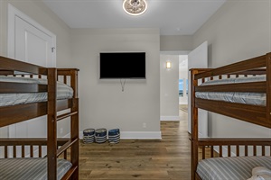 • Bedroom 4 (Second Floor): Sleeps 4, two twin over twin bunk beds, w/ smart tv and closet.