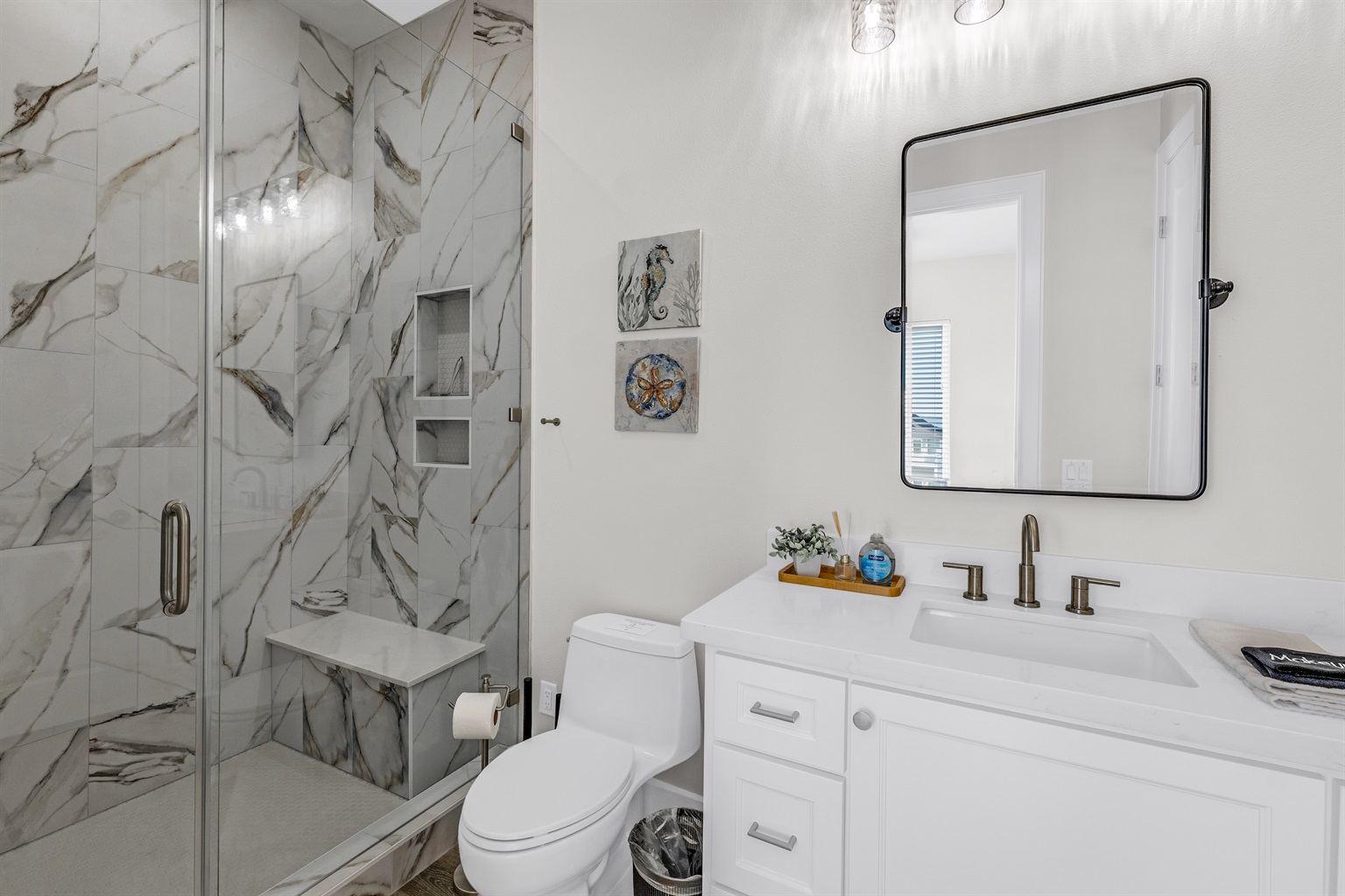 • Bedroom 2 (Second Floor): Sleeps 2, queen bed, ocean views, w/ private en-suite and closet.