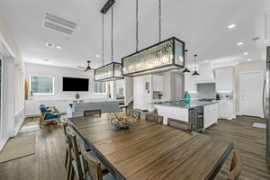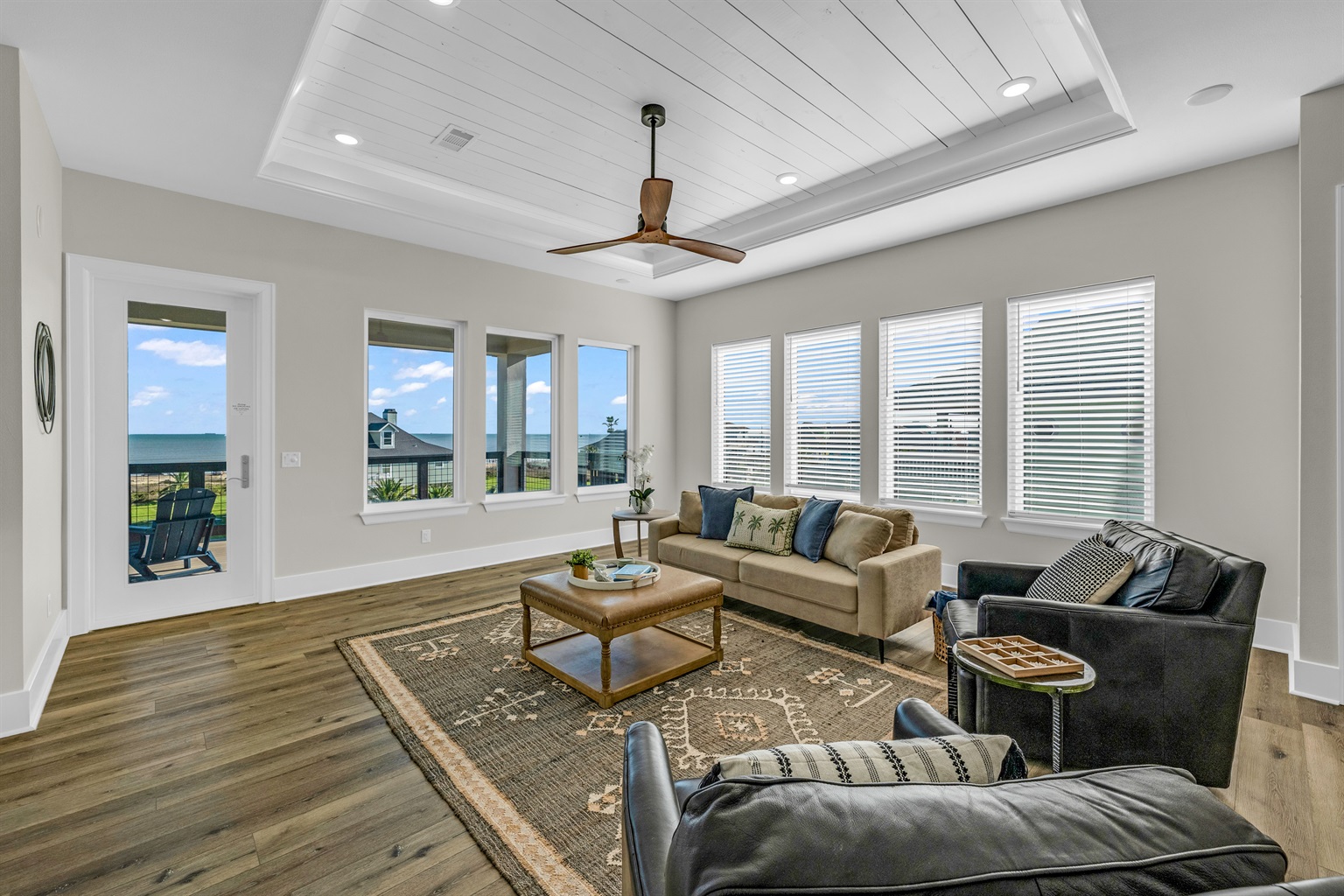 Enjoy the expansive comfort of our living room, boasting picturesque views of the Gulf Coast. Embrace sunsets and sunrises over the ocean creating a serene start or end to your day. Ample space is available for friends and family to gather, whether it's for engaging in indoor games or enjoying a movie night on our Smart TV w/ streaming. Cozy up with provided blankets for an added layer of warmth and relaxation. Need more space to entertain, enjoy our media room space on second floor w/ seating and access to the second floor viewing deck.