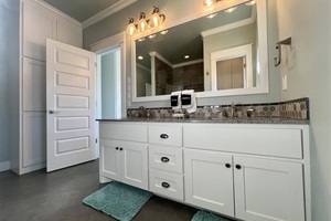 • Bedroom 4 (Second Floor): Sleeps 2, queen bed, w/ custom built in storage cabinets/drawers, smart tv and a jack n jill ensuite that services bedrooms 4 & 5 (bunk room)