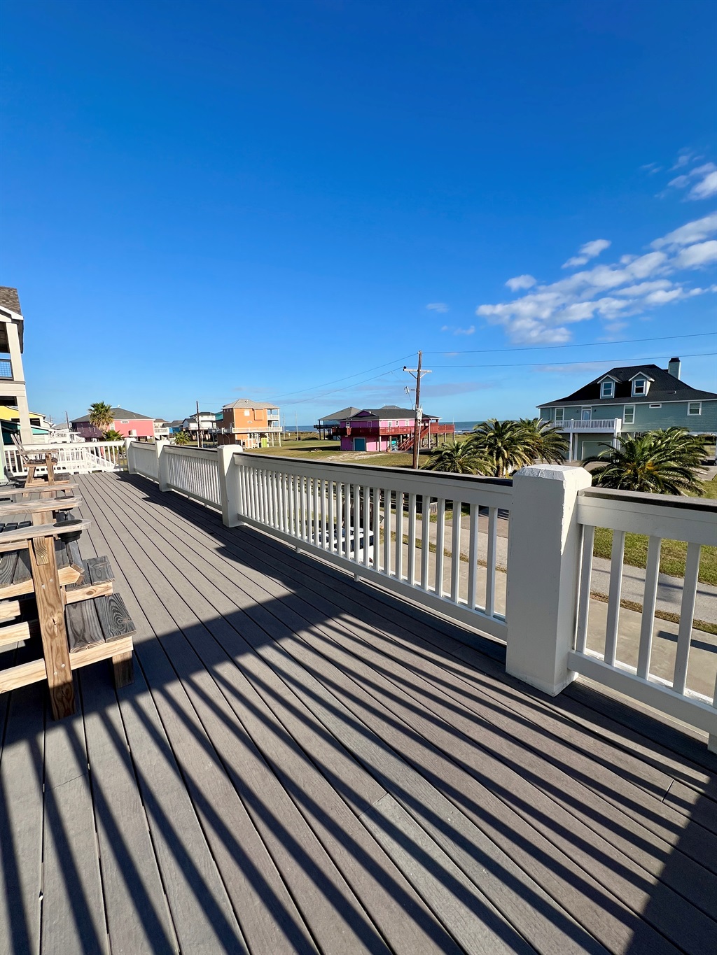 Discover unparalleled luxury at this stunning 5BR, 3.5BA almost beachfront retreat, nestled in the heart of Crystal Beach. Revel in breathtaking ocean views and direct beach access. A spacious open-concept living area, and multiple decks, this home is perfect for families and groups seeking a memorable coastal getaway. Enjoy modern amenities like a fully equipped kitchen, SMART TVs, two enclosed outdoor showers and swim spa. Your dream Texas coast vacation starts here!
