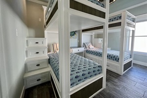 • Bedroom 5 (Second Floor): Sleeps 4, two twin bunk beds, w/ custom built in storage cabinets/drawers, smart tv and a jack n jill ensuite.