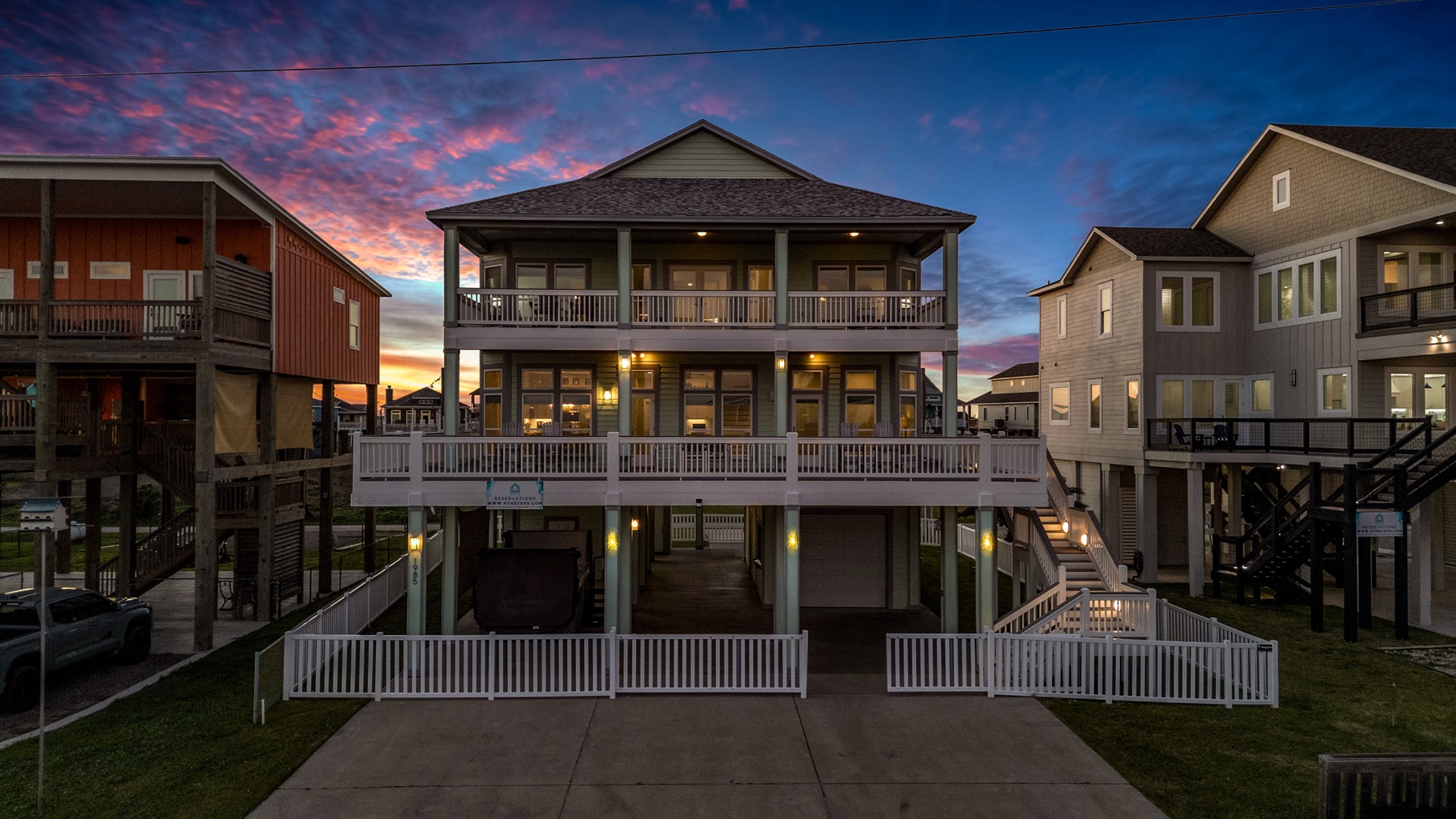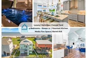 Discover unparalleled luxury at this stunning 5BR, 3.5BA almost beachfront retreat, nestled in the heart of Crystal Beach. Revel in breathtaking ocean views and direct beach access. A spacious open-concept living area, and multiple decks, this home is perfect for families and groups seeking a memorable coastal getaway. Enjoy modern amenities like a fully equipped kitchen, SMART TVs, two enclosed outdoor showers and swim spa/hot tub. Your dream Texas coast vacation starts here!