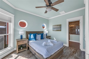 • Bedroom 3 (Second Floor): Sleeps 2, queen bed, w/ custom built in storage cabinets/drawers, smart tv and a jack n jill ensuite.