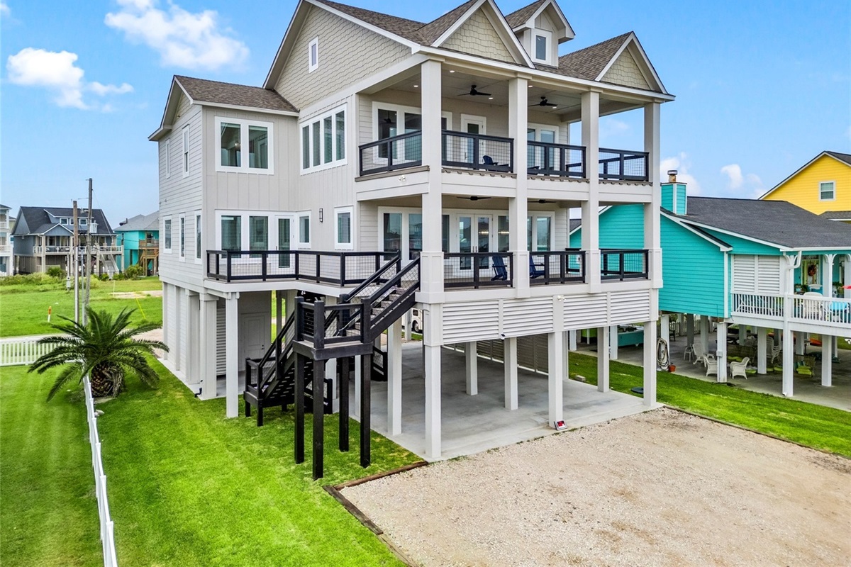 Discover unparalleled luxury at this stunning 5BR, 4.5BA almost beachfront retreat, nestled in the heart of Crystal Beach. Revel in breathtaking ocean views and direct beach access. A spacious open-concept living area, and multiple decks, this home is perfect for families and groups seeking a memorable coastal getaway. Enjoy modern amenities like a fully equipped kitchen, SMART TVs, two enclosed outdoor showers and swim spa. Your dream Texas coast vacation starts here!
